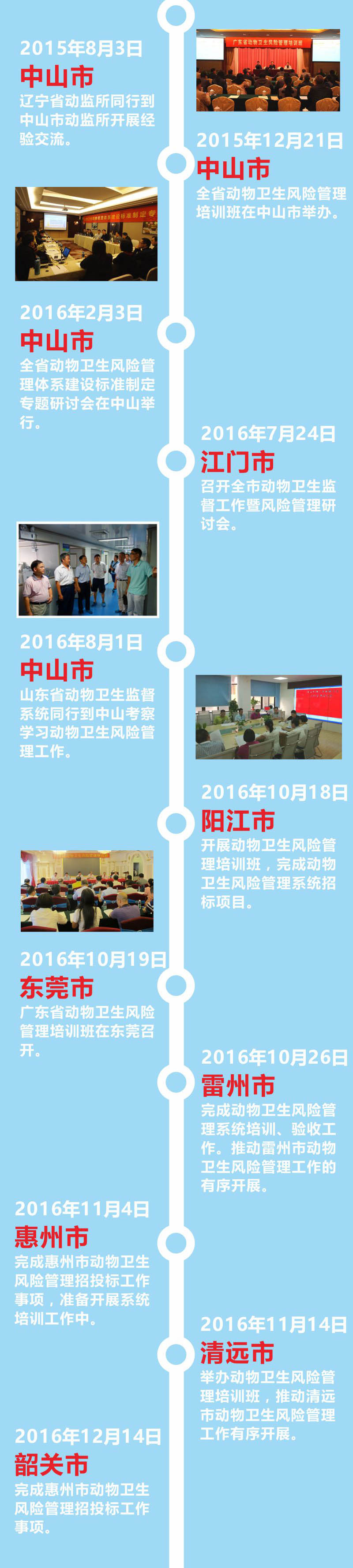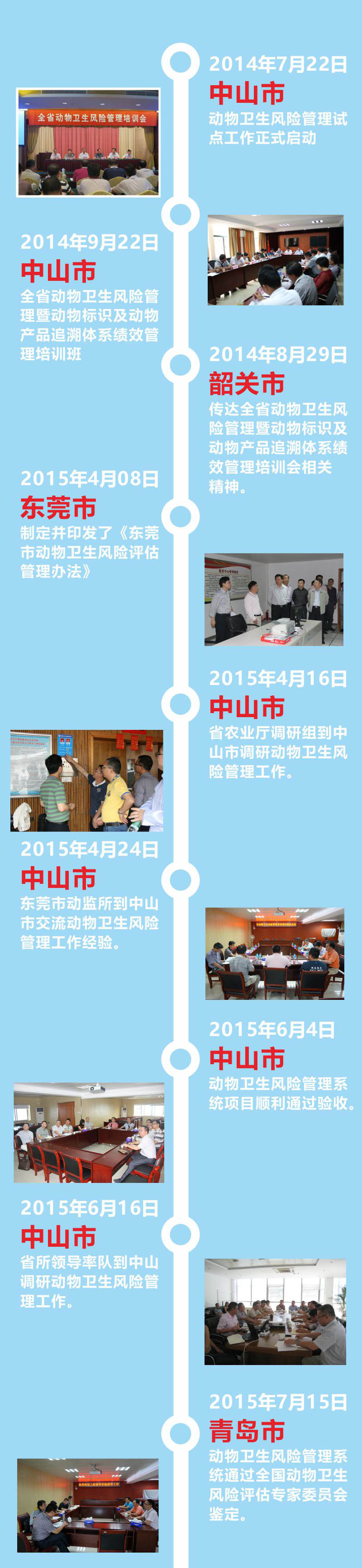 2014年動物衛(wèi)生風(fēng)險(xiǎn)管理試點(diǎn)工作在中山市正式啟動,隨后在廣東省動物衛(wèi)生監(jiān)督所的帶領(lǐng)下,東莞、韶關(guān)、河源、惠州、陽江、清遠(yuǎn)和雷州等地市相繼開展試點(diǎn)工作,組織執(zhí)法人員參加風(fēng)險(xiǎn)管理培訓(xùn)班。2015年動物衛(wèi)生風(fēng)險(xiǎn)管理系統(tǒng)在青島市通過全國動物衛(wèi)生風(fēng)險(xiǎn)評估專家委員會的鑒定。短短兩年時(shí)間內(nèi),動物衛(wèi)生風(fēng)險(xiǎn)管理試點(diǎn)遍布廣東省內(nèi) 8個地市。這充分說明動物衛(wèi)生風(fēng)險(xiǎn)管理系統(tǒng)的應(yīng)用推廣取得了階段性的成功。廣東省農(nóng)業(yè)廳和廣東省動物衛(wèi)生監(jiān)督所對此給予了高度肯定,并表示,動物衛(wèi)生風(fēng)險(xiǎn)管理系統(tǒng)的建立有效提高了工作效率,降低了行政成本,提升了物衛(wèi)生的風(fēng)險(xiǎn)控制能力和監(jiān)督管理水平,應(yīng)該在全省范圍內(nèi)推廣。