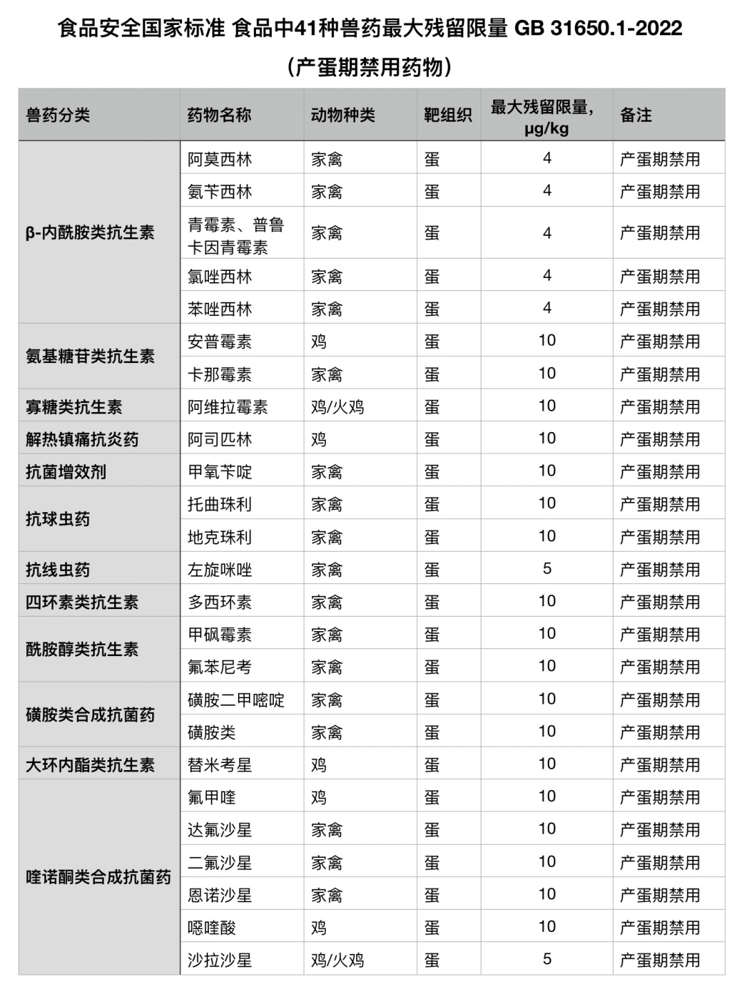 增修訂停用藥和產蛋期禁用藥物蛋中的最大殘留限量,為停用藥物、產蛋期不得使用藥物的檢出提供法定判定依據。