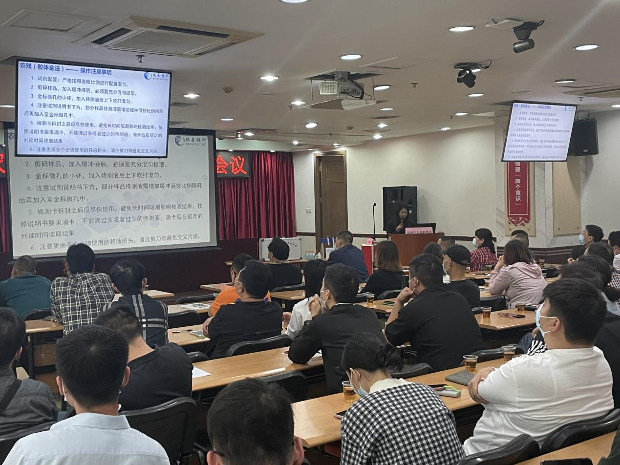 培訓(xùn)會議大致分為三大模塊,理論知識講解、快檢操作培訓(xùn)和現(xiàn)場互動問答。快檢操作培訓(xùn)課上,廣州瑞森生物科技股份有限公司陳經(jīng)理為大家系統(tǒng)講解了農(nóng)殘、獸殘檢測操作流程,以及詳細(xì)介紹了儀器設(shè)備的使用方法和工作原理、日常維護(hù)管理等相關(guān)方面的注意事項,同時講解了試劑和耗材的使用規(guī)范、儲存管理、日常維護(hù)等內(nèi)容。為參會人員提供了一場全面、細(xì)致、豐富的理論指導(dǎo)課。為了讓參與人員能夠更快掌握檢測培訓(xùn)核心知識點,瑞森生物還準(zhǔn)備了現(xiàn)場問答題目,以此幫助參會人員快速提升食品安全專業(yè)知識水平,更快掌握快檢技能以適應(yīng)崗位工作需求。
