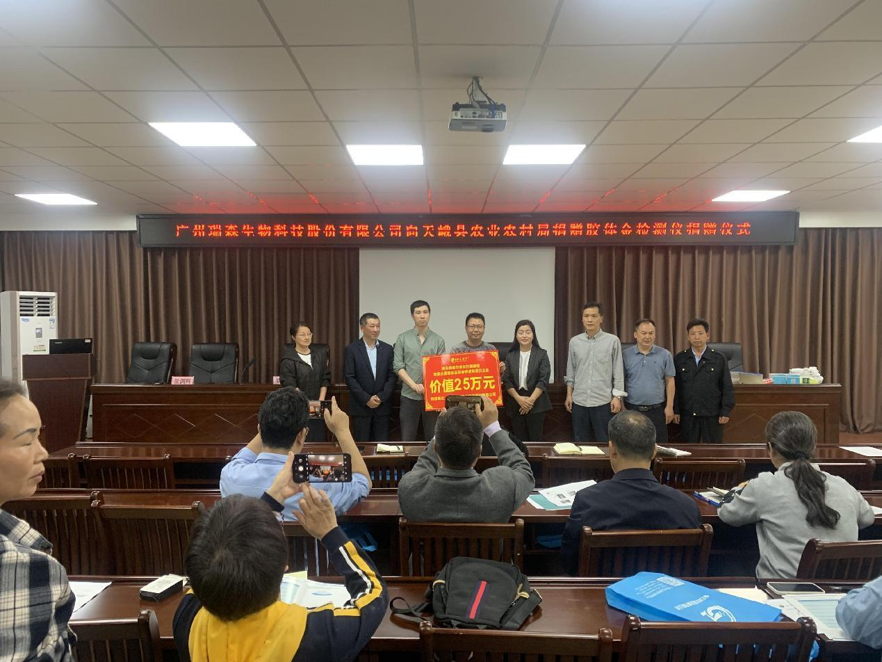 在捐贈儀式上,廣州瑞森生物科技股份有限公司向天峨縣捐贈先進檢測儀器設(shè)備共5套,價值25萬元。表達了瑞森生物公司對廣西紅色革命老區(qū)“中國長壽之鄉(xiāng)”天峨縣的熱心支持,旨在希望未來能夠更好的為革命老區(qū)在食品安全快檢監(jiān)督工作開展方面提供技術(shù)保障和優(yōu)質(zhì)服務(wù),為天峨縣老百姓能夠吃上綠色、安全、放心的食用農(nóng)產(chǎn)品貢獻企業(yè)的一份力量。