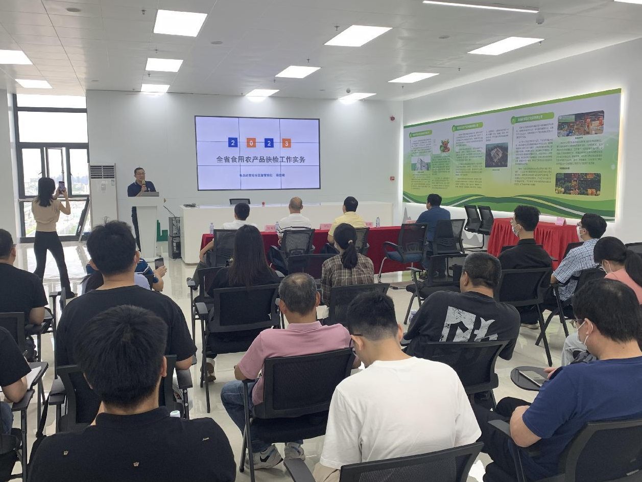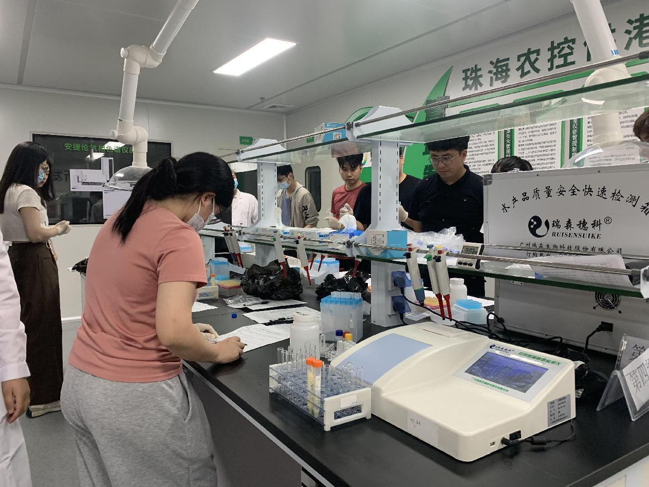 根據(jù)《2023年珠海市開展市場銷售食用農(nóng)產(chǎn)品快速檢測工作方案》有關(guān)要求,為提高食用農(nóng)產(chǎn)品快速檢測操作技術(shù)水平,推進(jìn)珠海市食用農(nóng)產(chǎn)品快檢工作的順利開展,珠海市市場監(jiān)督管理局于2023年5月18-19日在珠海市農(nóng)產(chǎn)品物流與安全檢測中心舉辦“珠海市2023 年食用農(nóng)產(chǎn)品快速檢測工作培訓(xùn)班”。珠海市市場監(jiān)督管理局分管領(lǐng)導(dǎo)、珠海市各區(qū)負(fù)責(zé)食用農(nóng)產(chǎn)品快檢工作的基層監(jiān)管人員、各區(qū)委托第三方檢驗(yàn)機(jī)構(gòu)派出人員,菜籃子配送平臺(tái)、農(nóng)貿(mào)市場及超市快檢人員、廣州瑞森生物科技股份有限公司相關(guān)領(lǐng)導(dǎo)及技術(shù)培訓(xùn)同事參與了本次培訓(xùn)班活動(dòng)。