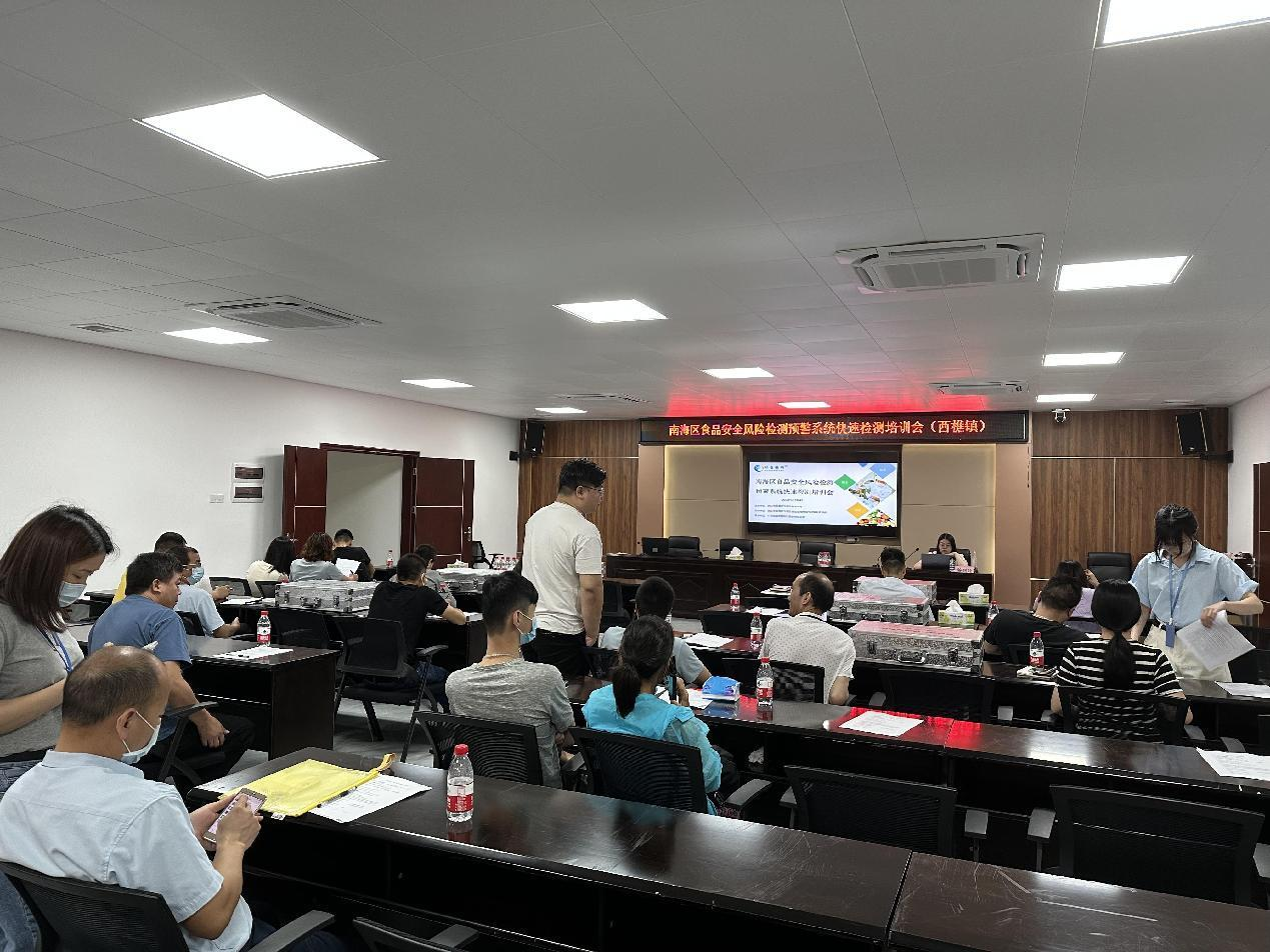 為確保2023年“南海區(qū)食品安全檢測大數(shù)據(jù)風(fēng)險(xiǎn)分析系統(tǒng)保障食品安全工作”項(xiàng)目的順利開展,佛山市南海區(qū)市場監(jiān)督管理局委托廣州市瑞森生物科技股份有限公司會同南海區(qū)各鎮(zhèn)(街道)市場監(jiān)督管理所于2023年5月5日-19日期間為南海區(qū)全區(qū)各食品安全風(fēng)險(xiǎn)監(jiān)測點(diǎn)人員開展食用農(nóng)產(chǎn)品農(nóng)藥殘留快速檢測培訓(xùn)工作。本次培訓(xùn)活動由南海區(qū)各鎮(zhèn)(街道)市場監(jiān)督管理所與瑞森生物公司共同組織開展。培訓(xùn)活動規(guī)模龐大,參加培訓(xùn)的人員為南海區(qū)全區(qū)各食品安全檢測大數(shù)據(jù)風(fēng)險(xiǎn)分析系統(tǒng)保障食品安全工作項(xiàng)目風(fēng)險(xiǎn)檢測點(diǎn)相關(guān)操作人員及負(fù)責(zé)人,培訓(xùn)對象包括了南海區(qū)全區(qū)7個(gè)鎮(zhèn)街954個(gè)自檢單位(含:農(nóng)貿(mào)市場,超市,配送企業(yè),酒店,餐飲店和學(xué)校,醫(yī)院,機(jī)關(guān)單位,敬老院等單位食堂)。