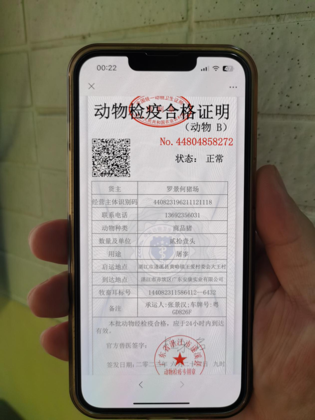 湛江市動(dòng)物衛(wèi)生檢疫所以動(dòng)物檢疫追溯監(jiān)管體系建設(shè)為依托,以動(dòng)物產(chǎn)地檢疫為抓手,推動(dòng)全市檢疫監(jiān)督管理轉(zhuǎn)型升級(jí)。通過全市推廣產(chǎn)地檢疫“微信申報(bào)”,推廣“微信申報(bào)-移動(dòng)終端現(xiàn)場(chǎng)檢疫-電子證照”產(chǎn)地檢疫新模式,湛江市在全省率先實(shí)現(xiàn)了動(dòng)物產(chǎn)地檢疫全流程網(wǎng)上辦理以及無紙化出具檢疫證明。