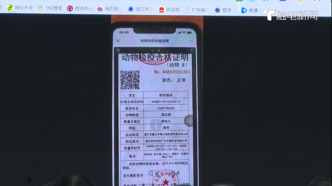 2023年7月7日, 湛江市無紙化出具動物檢疫合格證明和動物B證試點工作正式啟動,成為廣東省首個在動物產(chǎn)地檢疫環(huán)節(jié)實現(xiàn)無紙化出證的地級市,標(biāo)志著湛江動物檢疫和獸醫(yī)行政監(jiān)管工作邁入無紙化時代。