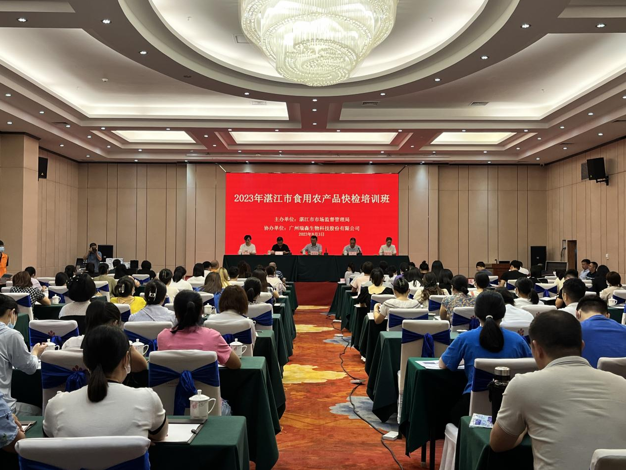 為貫徹落實(shí)好《2023年湛江市119家農(nóng)貿(mào)市場(chǎng)食用農(nóng)產(chǎn)品快速檢測(cè)工作方案》的要求,加強(qiáng)快檢人員的技術(shù)理論和實(shí)操培訓(xùn),確??鞕z操作人員熟練掌握快檢操作技能,提高食用農(nóng)產(chǎn)品快檢工作的效率。2023年8月3日,湛江市市場(chǎng)監(jiān)督管理局在廉江市麗波酒店舉辦2023年全系統(tǒng)食用農(nóng)產(chǎn)品農(nóng)殘快速檢測(cè)培訓(xùn)班會(huì)議。