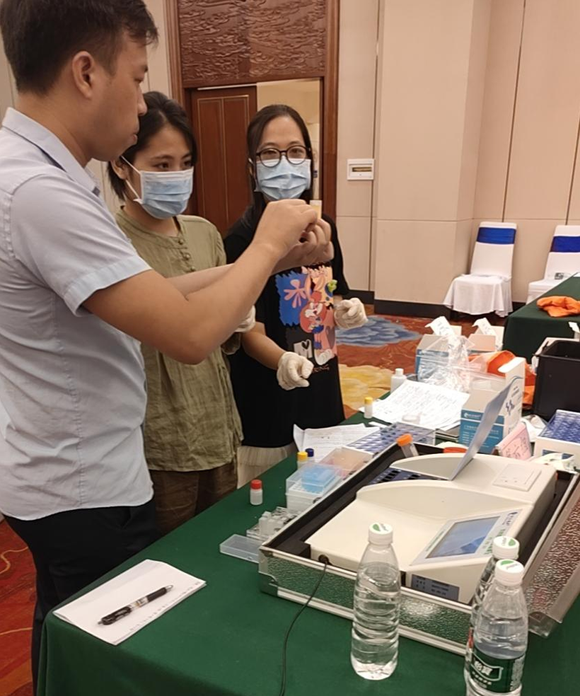 另外,在快檢實(shí)操培訓(xùn)課上,瑞森生物技術(shù)培訓(xùn)同事通過(guò)現(xiàn)場(chǎng)實(shí)操檢測(cè)食用農(nóng)產(chǎn)品的方式,讓參會(huì)人員親眼目睹并體驗(yàn)了整個(gè)食用農(nóng)產(chǎn)品快速檢測(cè)操作的過(guò)程,并系統(tǒng)的講解了農(nóng)產(chǎn)品膠體檢測(cè)操作流程的有關(guān)技術(shù)要點(diǎn),以及詳細(xì)介紹了儀器設(shè)備的使用方法和工作原理、日常維護(hù)管理等相關(guān)方面的注意事項(xiàng),同時(shí)講解了試劑和耗材的使用規(guī)范、儲(chǔ)存管理、日常維護(hù)等內(nèi)容。為參會(huì)人員提供了一場(chǎng)全面、細(xì)致、豐富的理論與實(shí)踐相結(jié)合的培訓(xùn)指導(dǎo)課程,以此幫助參會(huì)人員快速提升食品安全專(zhuān)業(yè)知識(shí)水平以及加強(qiáng)快檢技能的動(dòng)手能力,使快檢工作人員能夠更好的適應(yīng)相關(guān)崗位的工作要求。 在全體參會(huì)人員的共同努力下,本次培訓(xùn)班會(huì)議取得了圓滿成功,培訓(xùn)效果獲得了湛江市市場(chǎng)監(jiān)督管理局相關(guān)領(lǐng)導(dǎo)的高度好評(píng)。通過(guò)此次食用農(nóng)產(chǎn)品快速檢測(cè)工作的培訓(xùn),不僅全面提升了湛江市食品安全快檢從業(yè)人員的專(zhuān)業(yè)技術(shù)能力及水平,而且為進(jìn)一步提升全市食用農(nóng)產(chǎn)品質(zhì)量安全奠定了基礎(chǔ),提供了有力保障。相信在瑞森生物公司的全力支持與配合下,湛江市在食品安全快速檢測(cè)領(lǐng)域的未來(lái)將會(huì)越來(lái)越好!免責(zé)聲明:文章、視頻、圖片等所有內(nèi)容,僅用于學(xué)習(xí)交流,若有侵權(quán)內(nèi)容及其他涉法內(nèi)容,請(qǐng)及時(shí)聯(lián)系刪除或修改。
